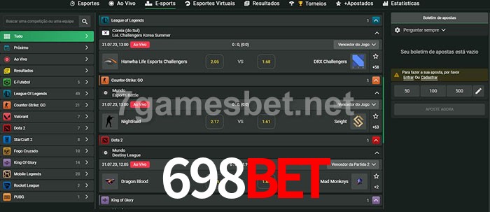 O 698bet oferece uma grande seleção de opções de apostas em e-sports com probabilidades competitivas